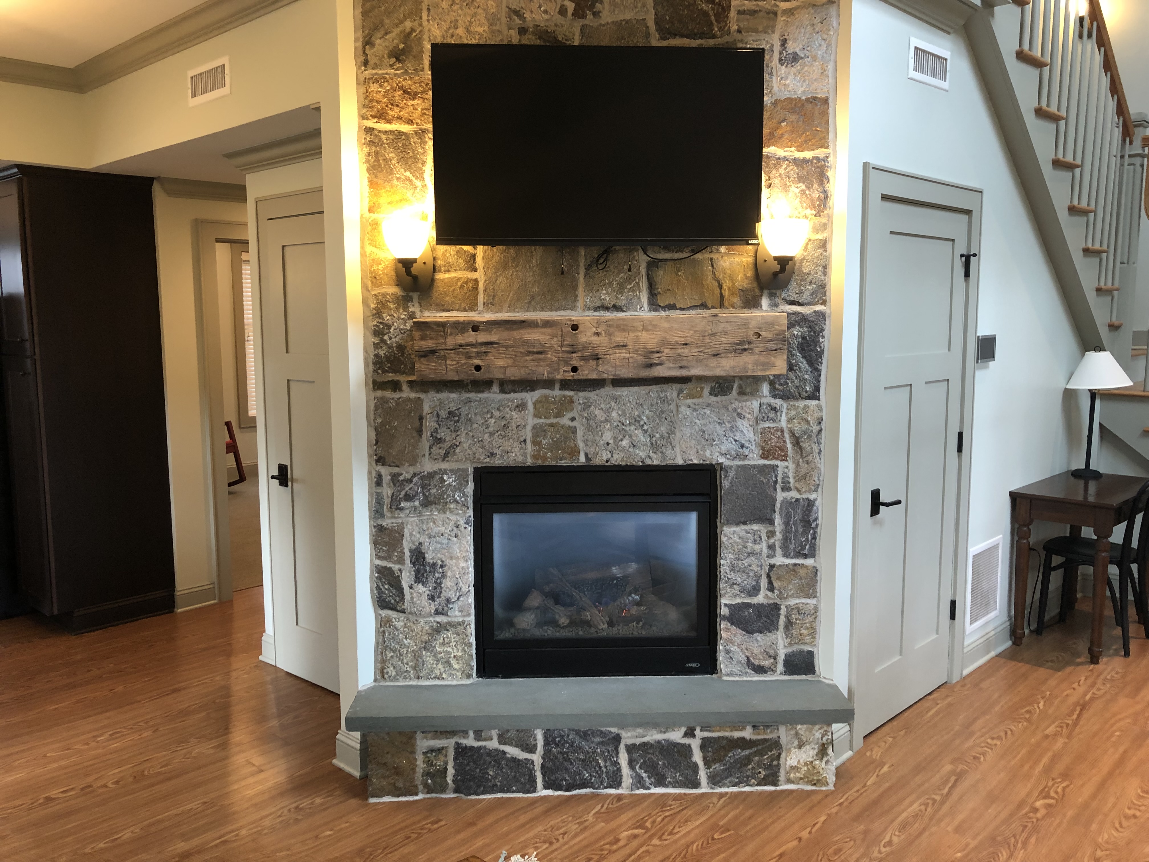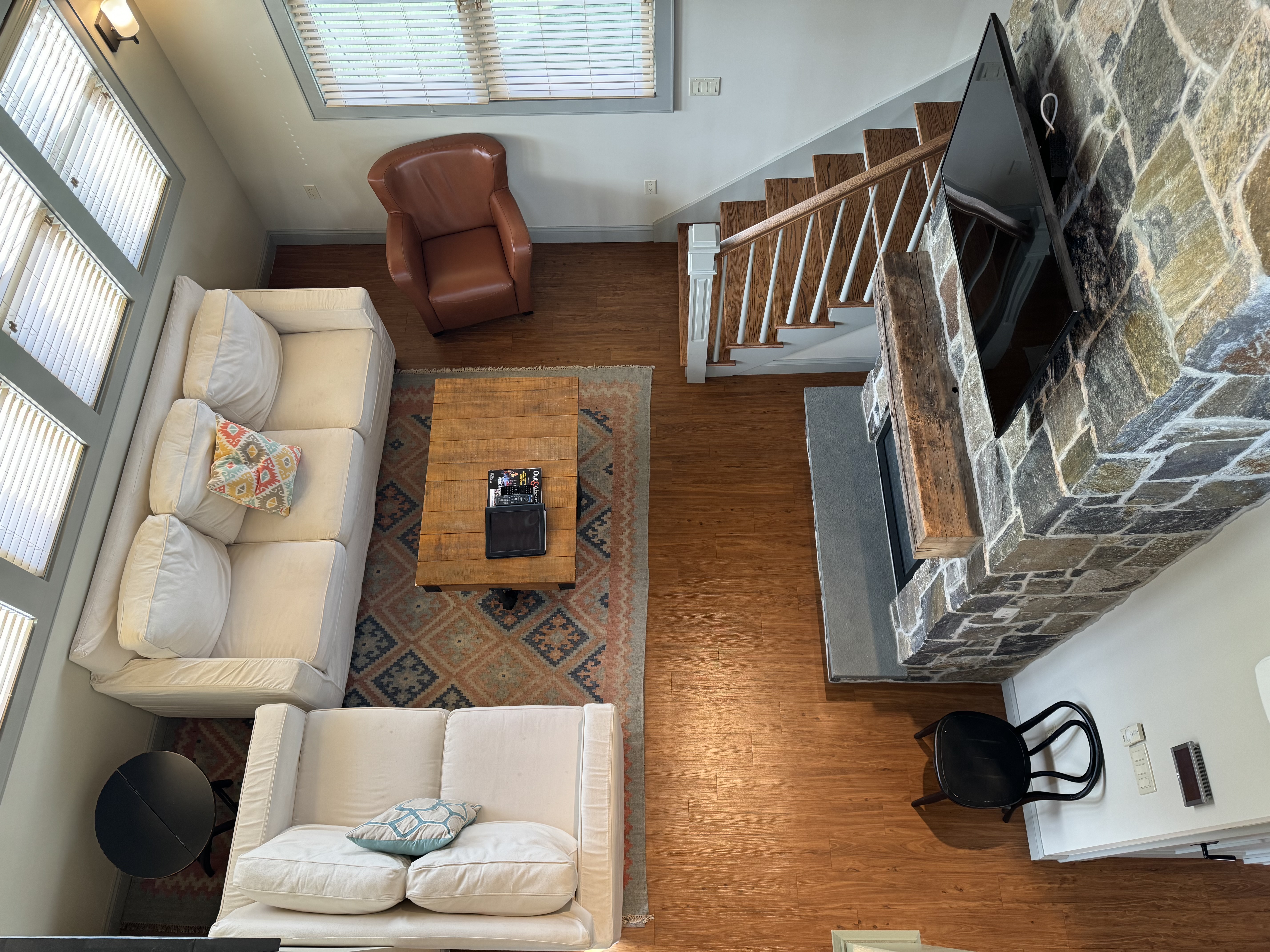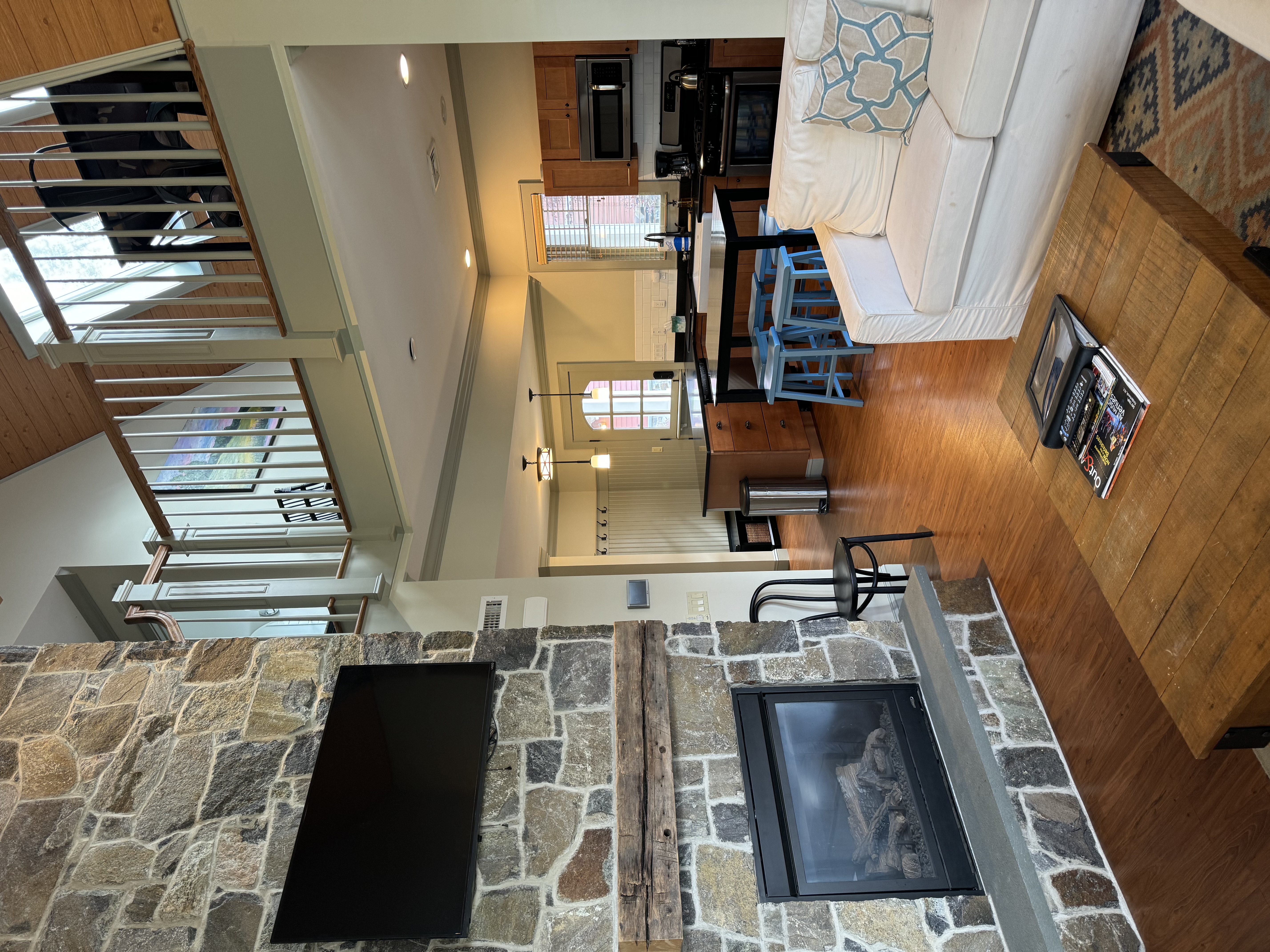 Complete with full kitchen, living room, dining area, gas fireplace, full size washer and dryer and queen sleeper sofa in second floor loft.