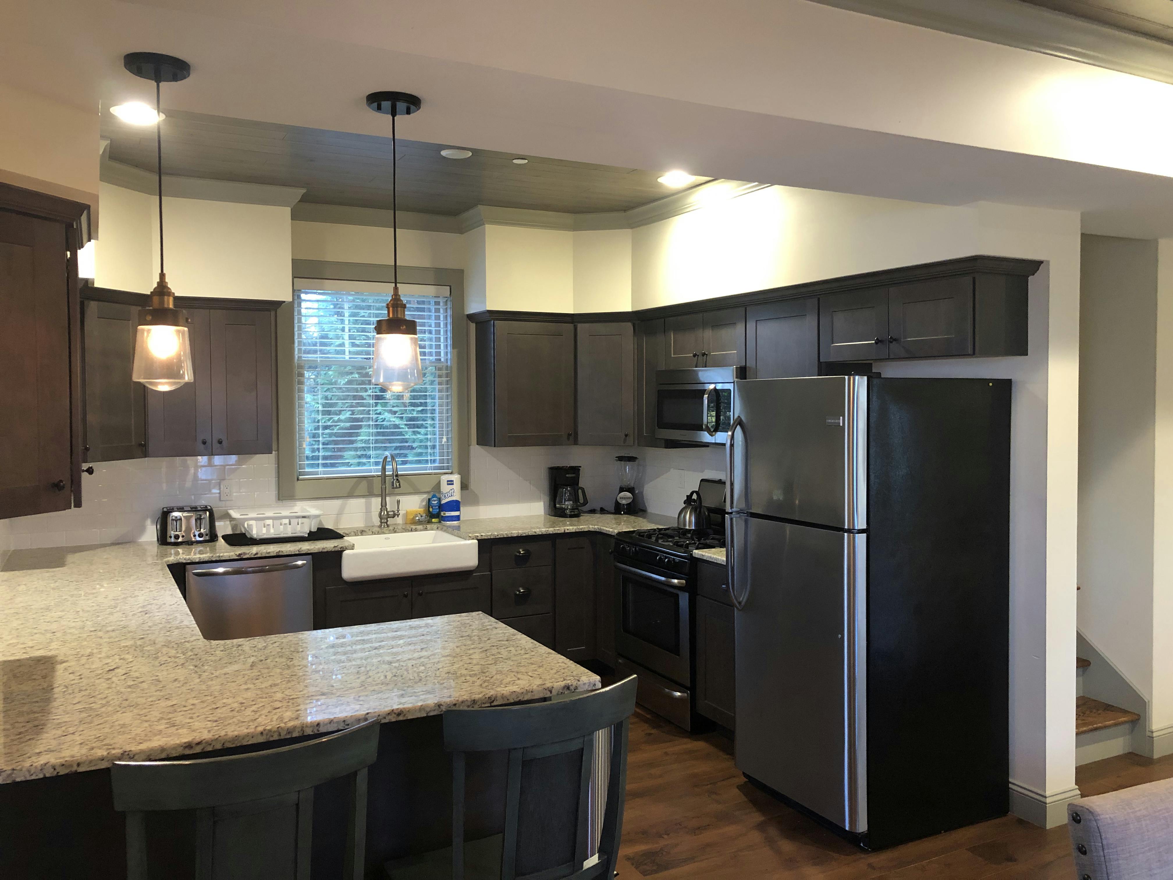 Three bedrooms, three and a half bathroom waterfront cottage. First floor offers living room with gas fireplace, dining table, full kitchen as well as a bedroom with king size bed, a full bathroom with shower and a half bathroom with full size washer and dryer. The second floor features a loft space with queen size sleeper sofa as well as two bedrooms with king size beds and both featuring en-suite bathrooms with shower.