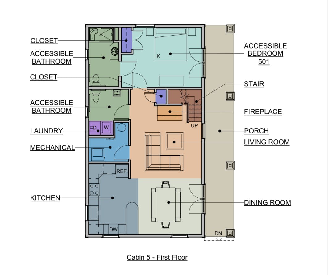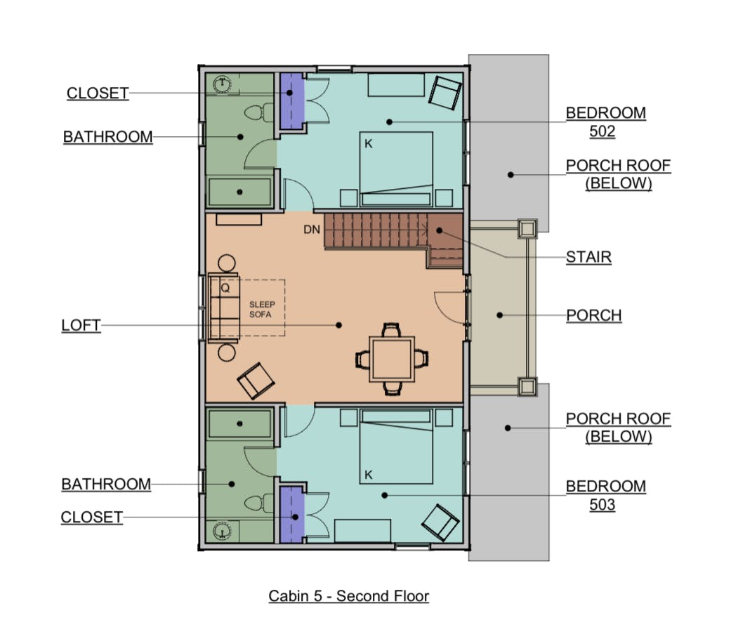 Complete with full kitchen, living room, dining area, gas fireplace, full size washer and dryer and queen sleeper sofa in second floor loft.